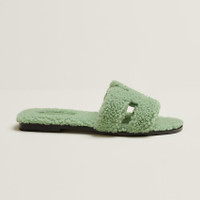 Sandal in woolskin with iconic "H" cut-out. A daring yet comfortable style. Made in Italy Product details Black leather sole Black leather heel Sea green woolskin insole and lining