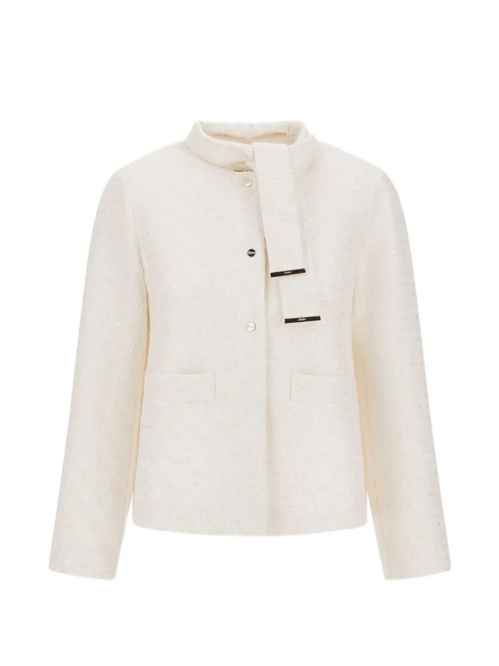 3D tweed jacket Highlights - Ivory - Flap pockets - Button closure - High neck Made in Italy Composition Outer: Other fibres 100%, Acrylic 100%, Cotton 57%, Polyester 23%, Polyamide 12% Lining: Acetate 65%, Polyester 35% Washing instructions Read Manufacturer Guidelines