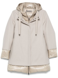 A-line lightweight coat Highlights - Beige - Virgin wool blend - Down-feather filling - A-line - Lightweight construction - Layered design - Front press-stud and zip fastening - Slouchy drawstring hood - High neck - Long sleeves - Quilted panel - Two side inset pockets - Quilted panel - Full lining - Straight hem - Above-knee length Made in Italy Composition Outer: Virgin Wool 75%, Cotton 55%, Polyester 45%, Polyamide 25% Lining: Polyamide 100%, Goose Down 90%, Goose Feather 10% SIZE & FIT Model measurements Height 5 ft 10 in(1.77 m) Bust/Chest 33.07 in(84 cm) Hips 37 in(94 cm) Waist 24.8 in(63 cm) FittingInformation Designed to be fitted across the shoulders, becoming looser as it falls Made from a padded non-stretch fabric, giving it no natural elasticity Washing instructions Dry Clean Only