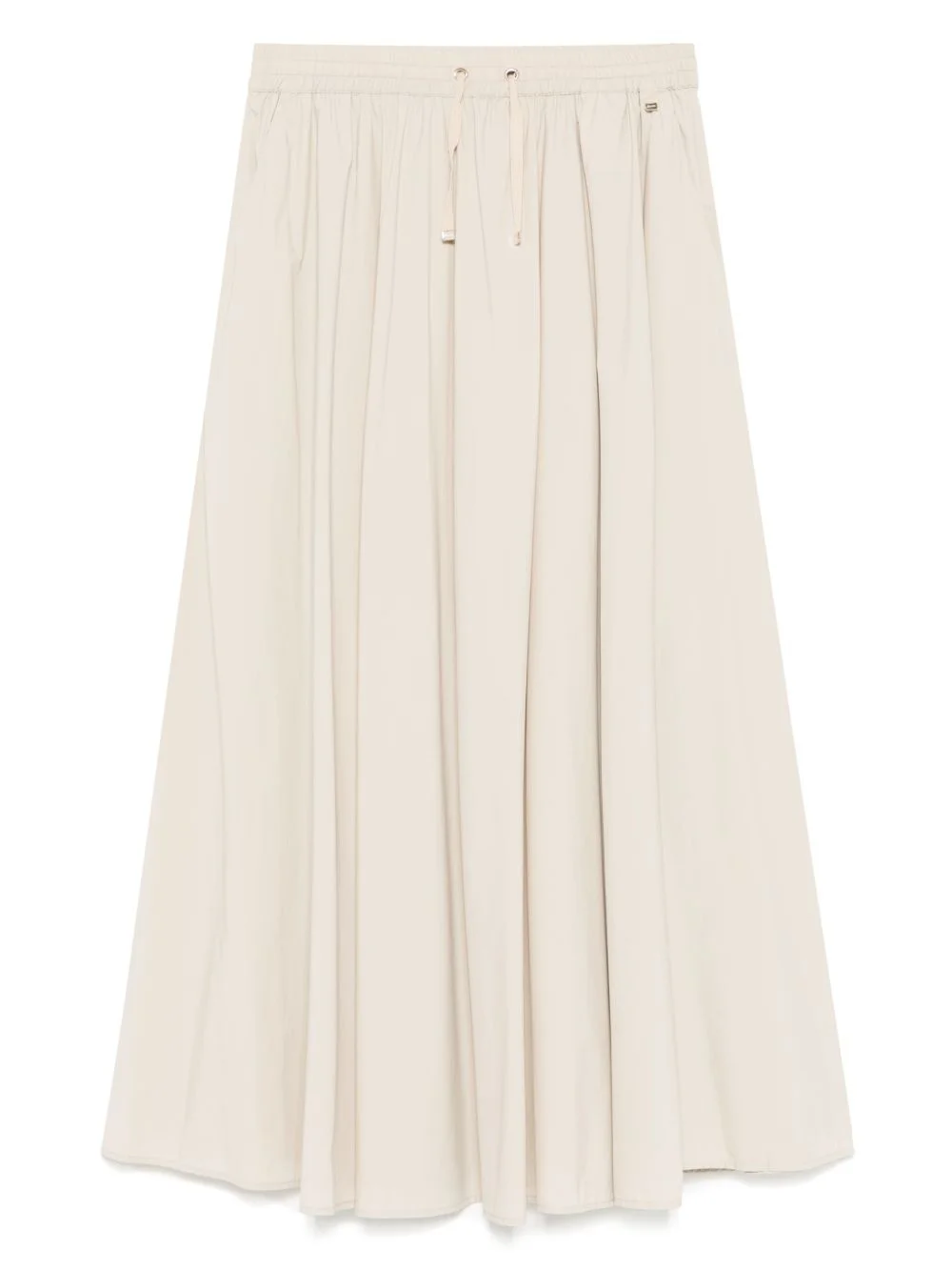 A-line midi skirt Highlights - Light beige - Drawstring fastening - Elasticated waistband - Two side slash pockets Imported Composition Polyamide 86%, Cotton 55%, Polyester 45%, Elastane 14% SIZE & FIT Model measurements Height 5 ft 10 in(1.77 m) Bust/Chest 32.28 in(82 cm) Hips 35.03 in(89 cm) Waist 25.19 in(64 cm) FittingInformation This maxi-length skirt is intended to be worn high on the waist The elasticated waist allows for a comfortable fit Made from a midweight non-stretch fabric