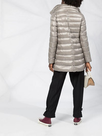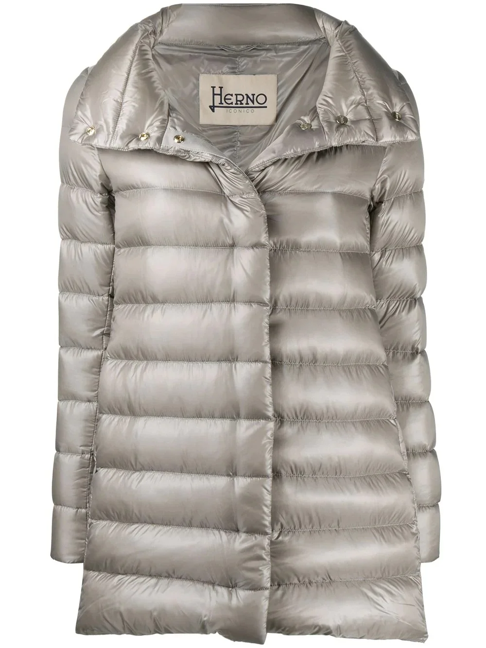 Ice grey Amelia padded coat from HERNO featuring padded design, high neck, snap fastening and long sleeves. Highlights - Ice grey - Padded design - High neck - Long sleeves - Snap fastening Imported Composition lining: Feather Down 100%,Polyamide 100%,Cotton 60%,Acetate 40% outer: Polyamide 100%