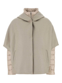 cape-style padded jacket Highlights - Gray - Hooded design - Front pockets - Zip fastening - Smooth padded sleeves Made in Italy Composition Nylon 100% Washing instructions Read Manufacturer Guidelines