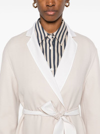 belted coat Highlights - Ecru - Two front patch pockets - Notched lapels - Long sleeves Made in Italy Composition Virgin Wool 99%, Polyamide 1% SIZE & FIT Model measurements Height 5 ft 10 in(1.77 m) Bust/Chest 29.92 in(76 cm) Hips 34.25 in(87 cm) Waist 23.62 in(60 cm) FittingInformation Designed to be unstructured, offering a loose fit throughout The tie fastening gives an adaptable and personalised fit Made from a midweight non-stretch fabric