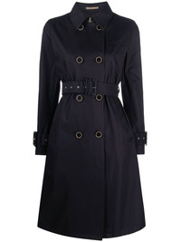 belted double-breasted trench coat navy blue cotton double-breasted button fastening belted waist belted cuffs inverted pleat two side welt pockets long sleeves straight hem knee-length Made in Italy Composition Lining: Cotton 100%, Acetate 65%, Polyester 35% Outer: Cotton 100% SIZE & FIT Model measurements Height 5 ft 9 in(1.75 m) Bust/Chest 31.49 in(80 cm) Hips 34.05 in(86.5 cm) Waist 24.21 in(61.5 cm) FittingInformation Designed for a slim fit that sits just away from the body offering a close yet comfortable fit The belt offers adjustability for fitted preferences Made from a midweight non-stretch fabric This piece fits true to size – take your usual size Washing instructions Dry Clean Only