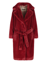 belted faux-fur coat Highlights - Burgundy - Faux fur - Belted waist - Notched lapels - Long sleeves - Concealed fastening Imported Composition Polyester 100% Washing instructions Read Manufacturer Guidelines