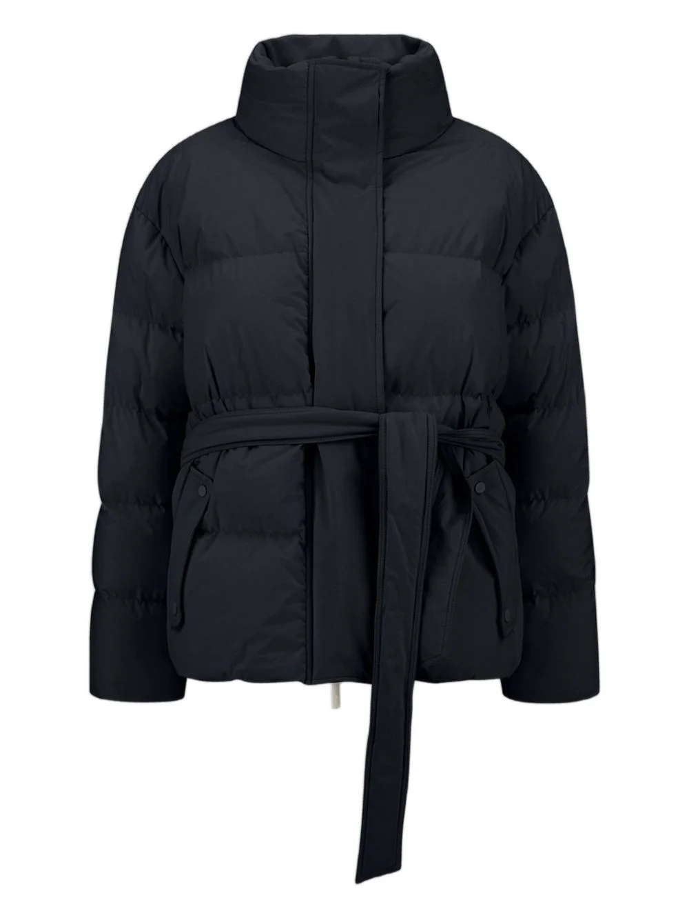 belted puffer jacket Highlights - Black - Quilted design - High collar - Self-tie belt - Snap button fastening - Long sleeves Imported Composition Lining: Nylon 100%, Down 80%, Feather 20% Outer: Nylon 100%