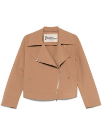 jersey biker jacket Highlights - Camel brown - Off-centre front zip fastening - Chest flap pocket - Two side welt pockets - Spread collar Made in Italy Composition Outer: Polyamide 75%, Elastane 25% Lining: Polyamide 75%, Elastane 25% SIZE & FIT Model measurements Height 5 ft 10 in(1.79 m) Bust/Chest 31.88 in(81 cm) Hips 35.43 in(90 cm) Waist 23.62 in(60 cm) FittingInformation Designed to be unstructured, offering a loose fit throughout Made from a midweight stretch fabric, this piece offers elasticity and flexibility when worn