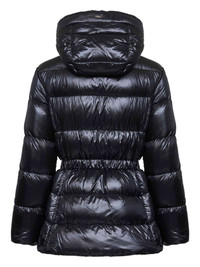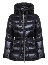 drawstring hooded jacket Highlights - Black - Adjustable grosgrain drawstring at hood - Metal logo ends - Long sleeves - Adjustable grosgrain drawstring at waist - Side pockets - Double-slider zip closure Imported Composition Outer: Polyamide 100% Lining: Down 50%, Feather 50% Washing instructions Read Manufacturer Guidelines