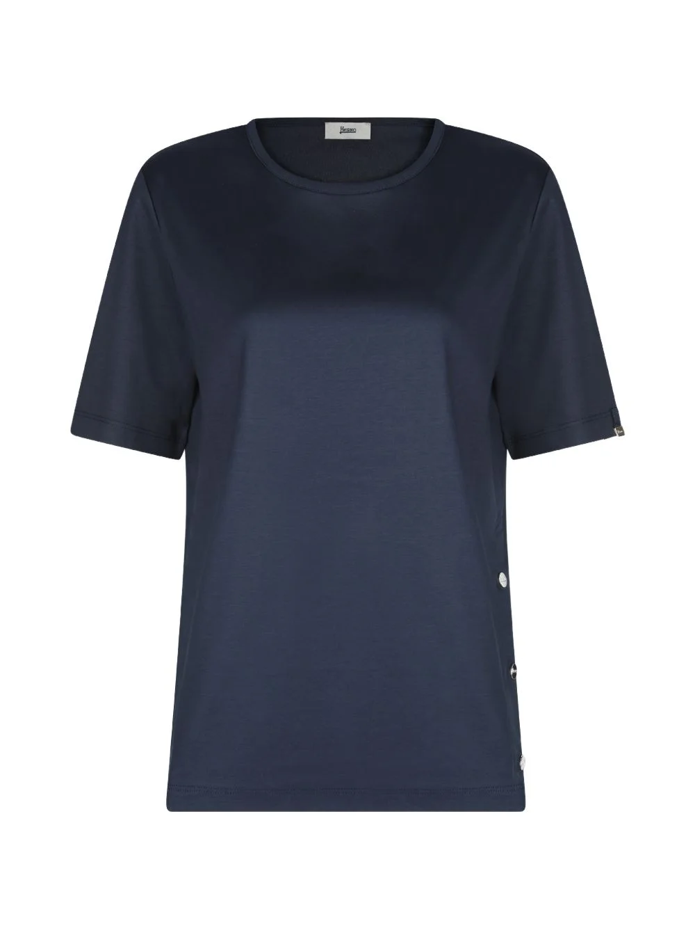 button-detail T-shirt Highlights - Blue - Round neck - Side press-stud detailing - Short sleeves - Straight hem Imported Composition Cotton 100% Washing instructions Read Manufacturer Guidelines