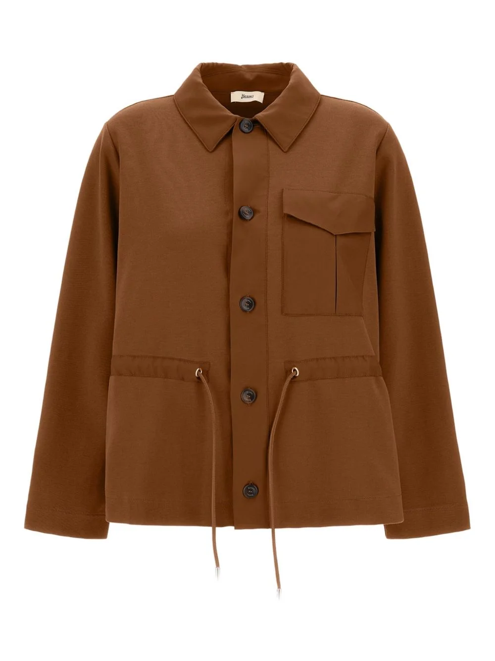 buttoned pocket top Highlights - Brown - Button fastening - Patch pocket - Drawstring hem - Long sleeves - Collared neck Imported Composition Polyester 100%, Cotton 100% Washing instructions Read Manufacturer Guidelines