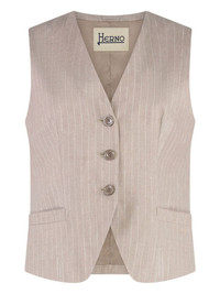 pinstripe waistcoat Highlights - Beige - Front button fastening - V-neck - Internal drawstring fastening waist - Two front welt pockets Imported Composition Fabric 100% Washing instructions Read Manufacturer Guidelines