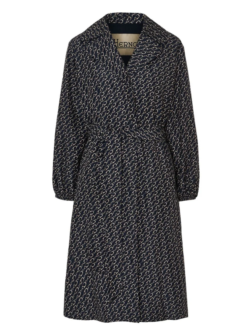 chain-print belted trench coat Highlights - Navy blue - Chain print - Belted waist - Long sleeves - Elasticated cuffs Made in Italy Composition Fabric 100% Washing instructions Read Manufacturer Guidelines