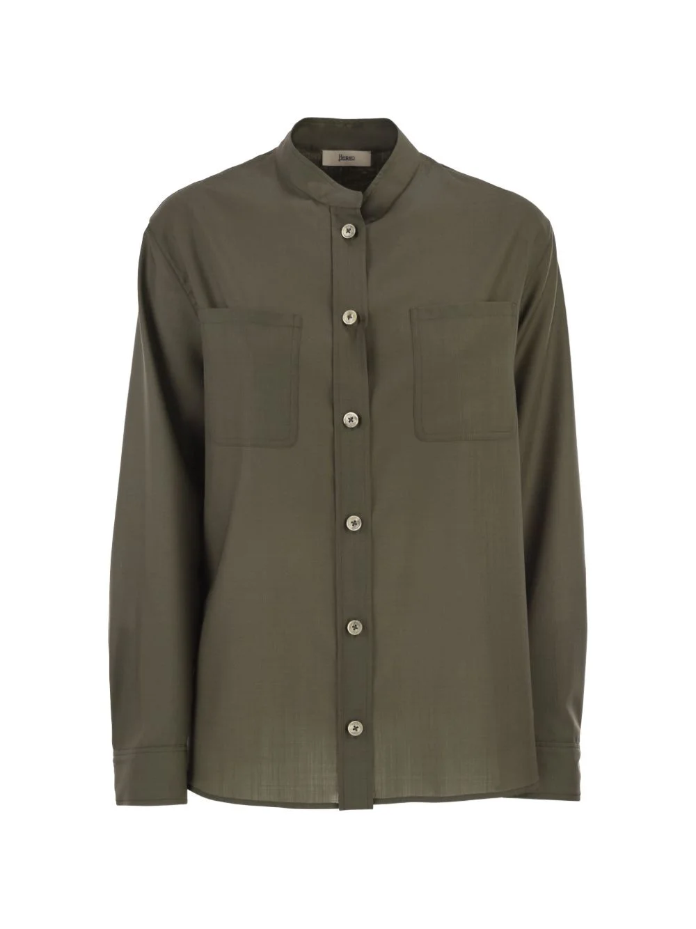 chest-pocket mandarin-collar shirt Highlights - Green - Button closure - Buttoned cuffs - Chest pockets - Mandarin collar Made in Italy Composition Virgin Wool 100% Washing instructions Read Manufacturer Guidelines