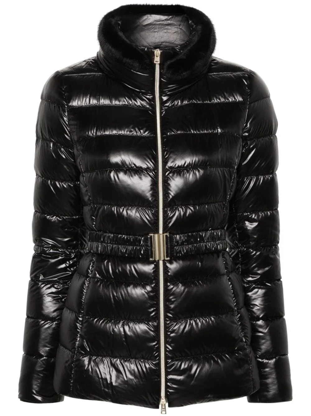 belted high-neck down jacket