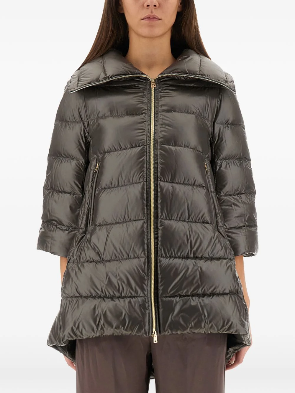 Cleofe zip-up quilted coat Highlights - Grey - Quilted - Two-way zip fastening - Three-quarter sleeves - Welt pockets - Enveloping collar Imported Composition Outer: Polyamide 100% Lining: Polyamide 100%, Down 90%, Feather 10% Washing instructions Read Manufacturer Guidelines