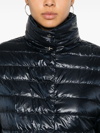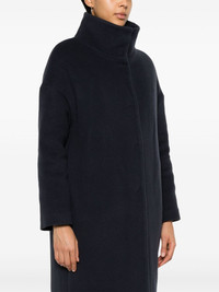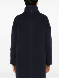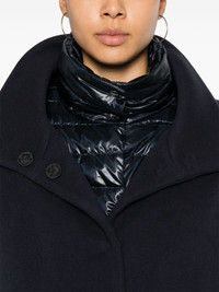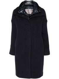 layered padded parka coat Highlights - Navy blue - Virgin wool blend - Layered design - Padded panels - Quilted panels - High neck - Drop shoulder - Long sleeves - Two side inset pockets - Straight hem - Removable lining - Front press-stud fastening Made in Italy Composition Outer: Virgin Wool 72%, Cotton 55%, Polyester 45%, Polyamide 28% Lining: Polyamide 100%, Down 100%, Acetate 65%, Polyester 35% Washing instructions Dry Clean Only