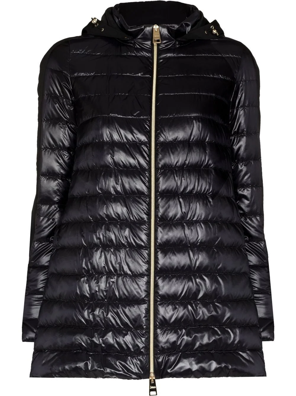 concealed-hood padded jacket A true example of Herno's functional design style, this padded jacket is defined by its practical elements. This black layering piece boasts a concealed drawstring hood and a two-way zip fastening. Imported Composition Outer: Polyamide 100%, Polyester 54%, Cotton 46% Lining: Feather Down 100%, Polyamide 100% Washing instructions Dry Clean Only