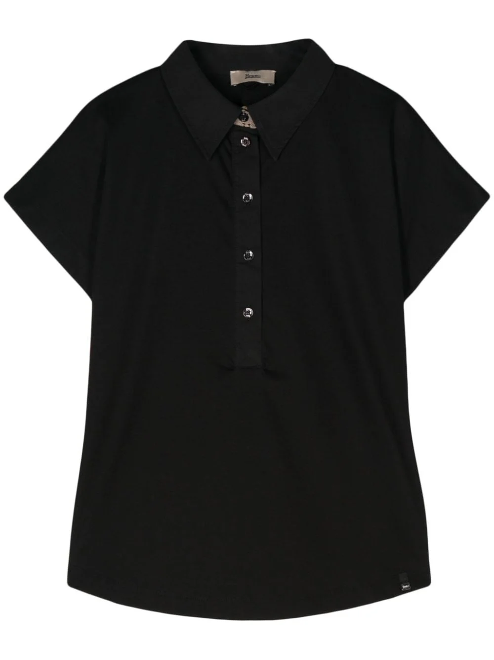 cotton polo shirt Highlights - Black - Cotton - Technical jersey - Polo collar - Short sleeves - Short side slits - Curved hem - Front button placket Imported Composition Cotton 100%