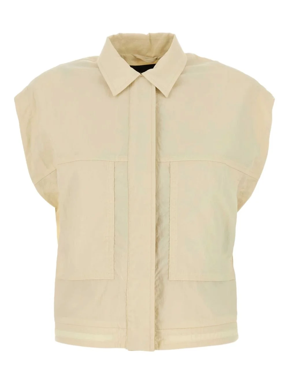 panelled vest Highlights - Light beige - Concealed front fastening - Rear elasticated hem - Classic collar - Sleeveless Imported Composition Lining: Polyester 100% Outer: Polyamide 100%