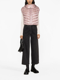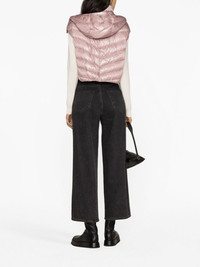 cropped down gilet HERNO lends this gilet a sporty appeal, drawing inspiration from the bomber jacket to design this silhouette. The lilac-hued piece is insulated with feather down for extra warmth. Highlights - Lilac - Down-feather filling - Padded design - Glossy finish - Detachable hood - Concealed front zip fastening - Short sleeves - Two side slit pockets - Cropped Imported Composition Lining: Polyamide 100%, Down 90%, Feather 10% Outer: Polyamide 100% SIZE & FIT Model measurements Height 5 ft 10 in(1.78 m) Bust/Chest 31.49 in(80 cm) Hips 35.03 in(89 cm) Waist 23.62 in(60 cm) FittingInformation Designed for a relaxed fit, this piece allows for comfort and movement when worn Made from a padded non-stretch fabric, giving it no natural elasticity This piece fits true to size – take your usual size