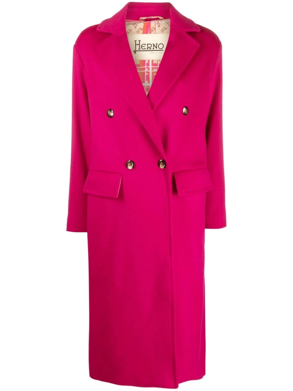 double-breast virgin wool coat Highlights - Fuchsia pink - Virgin wool - Wide notch lapels - Long sleeves - Double-breasted button fastening - Two front flap pockets - Below-knee length - Straight hem Made in Italy Composition Outer: Virgin Wool 100% Lining: Polyester 100% SIZE & FIT Model measurements Height 5 ft 10 in(1.79 m) Bust/Chest 32.67 in(83 cm) Hips 34.25 in(87 cm) Waist 24.4 in(62 cm) FittingInformation Designed to be unstructured, offering a loose fit throughout Made from a midweight non-stretch fabric This piece fits true to size – take your usual size Washing instructions Dry Clean Only