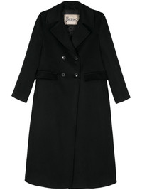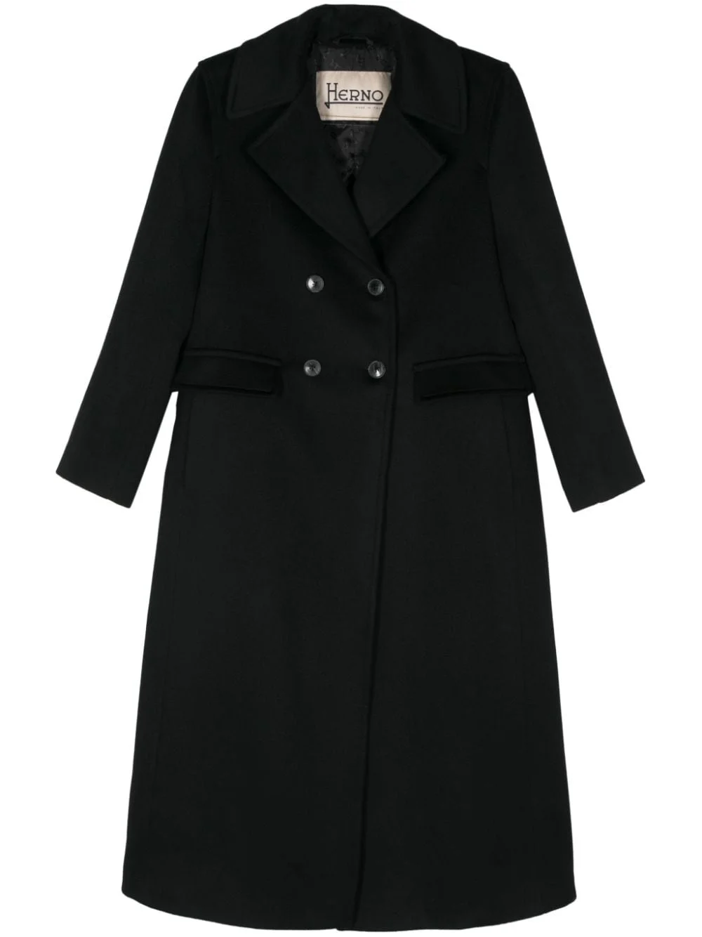 double-breasted coat Highlights - Black - Virgin wool - Felted - Notched lapels - Double-breasted button fastening - Long sleeves - Buttoned cuffs - Two front flap pockets - Long length - Straight hem Made in Italy Composition Outer: Virgin Wool 100% Lining: Viscose 100%, Acetate 65%, Polyester 35% SIZE & FIT FittingInformation Designed to be unstructured, offering a loose fit throughout The vented hem offers movement at the rear Made from a midweight non-stretch fabric