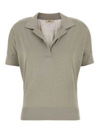 cotton-blend polo shirt Highlights - Taupe grey - Silver-tone logo plaque - Split neck - Short sleeves Made in Italy Composition Lyocell 67%, Cotton 33%
