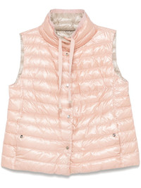 down gilet Highlights - Light pink - Front press-stud fastening - Drawstring neck - Two press-stud fastening side pockets - Quilted Imported Composition Lining: Goose Down 90%, Goose Feather 10% Outer: Polyester 100%, Polyamide 100% SIZE & FIT Model measurements Height 5 ft 10 in(1.77 m) Bust/Chest 32.28 in(82 cm) Hips 35.03 in(89 cm) Waist 25.19 in(64 cm) FittingInformation Designed for a relaxed fit, this piece allows for comfort and movement when worn Made from a padded non-stretch fabric, giving it no natural elasticity Washing instructions Dry Clean Only