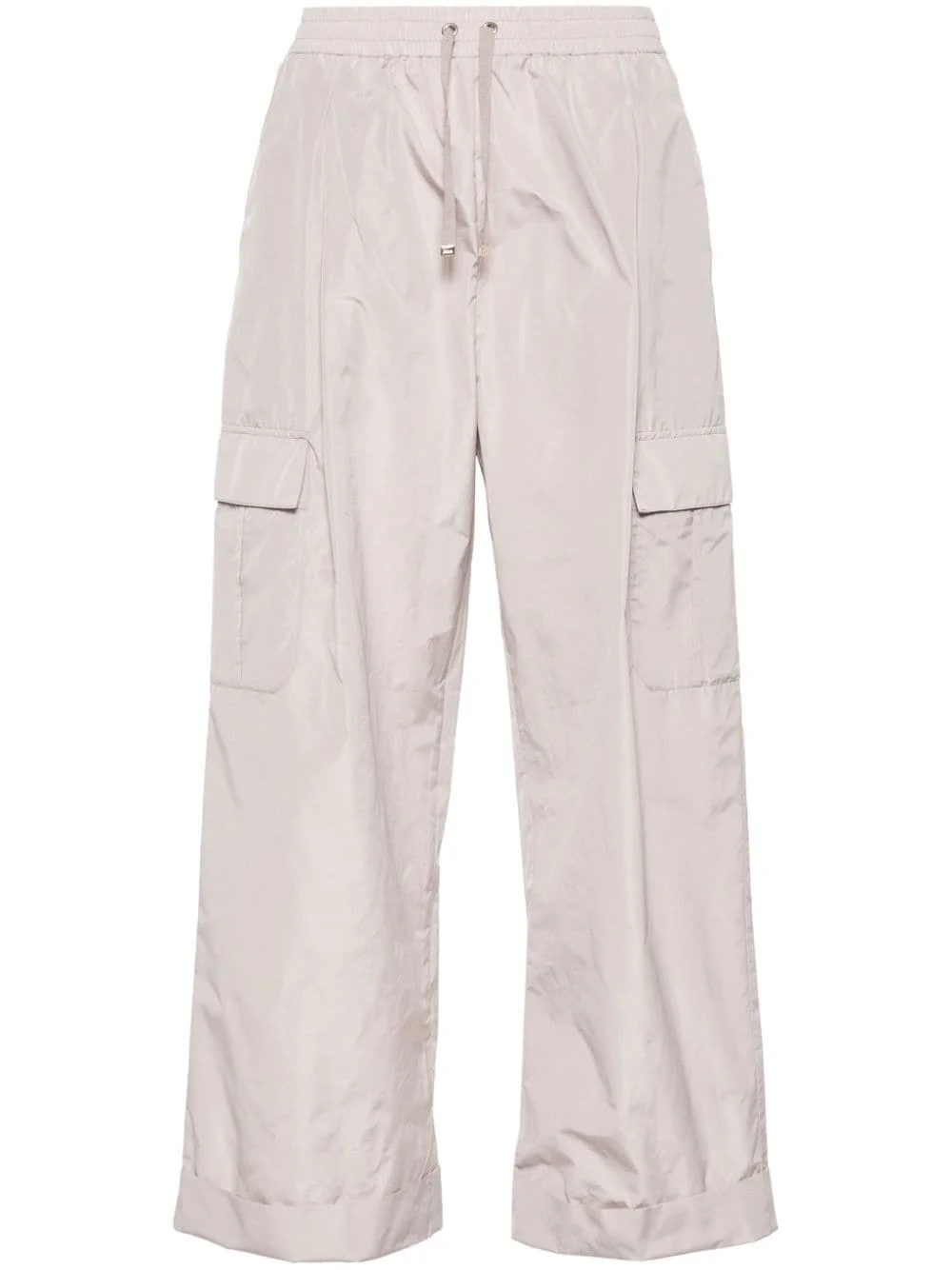 drawstring-fastening trousers Highlights - Medium grey - Shell - Elasticated drawstring waistband - Two diagonal pockets to the sides - Two side flap pockets - Rear welt pocket - Turn-up cuffs - Pull-on style Made in Italy Composition Outer: Polyester 100% Lining: Cotton 100% SIZE & FIT Model measurements Height 5 ft 11 in(1.8 m) Bust/Chest 33.07 in(84 cm) Hips 37.4 in(95 cm) Waist 25.19 in(64 cm) FittingInformation Designed for a straight-leg fit, these trousers allow for a close fit at the waist and an unrestricted, comfortable fit over the leg The elasticated waist allows for a comfortable fit Made from a lightweight non-stretch fabric This piece fits true to size – take your usual size Washing instructions Machine Wash