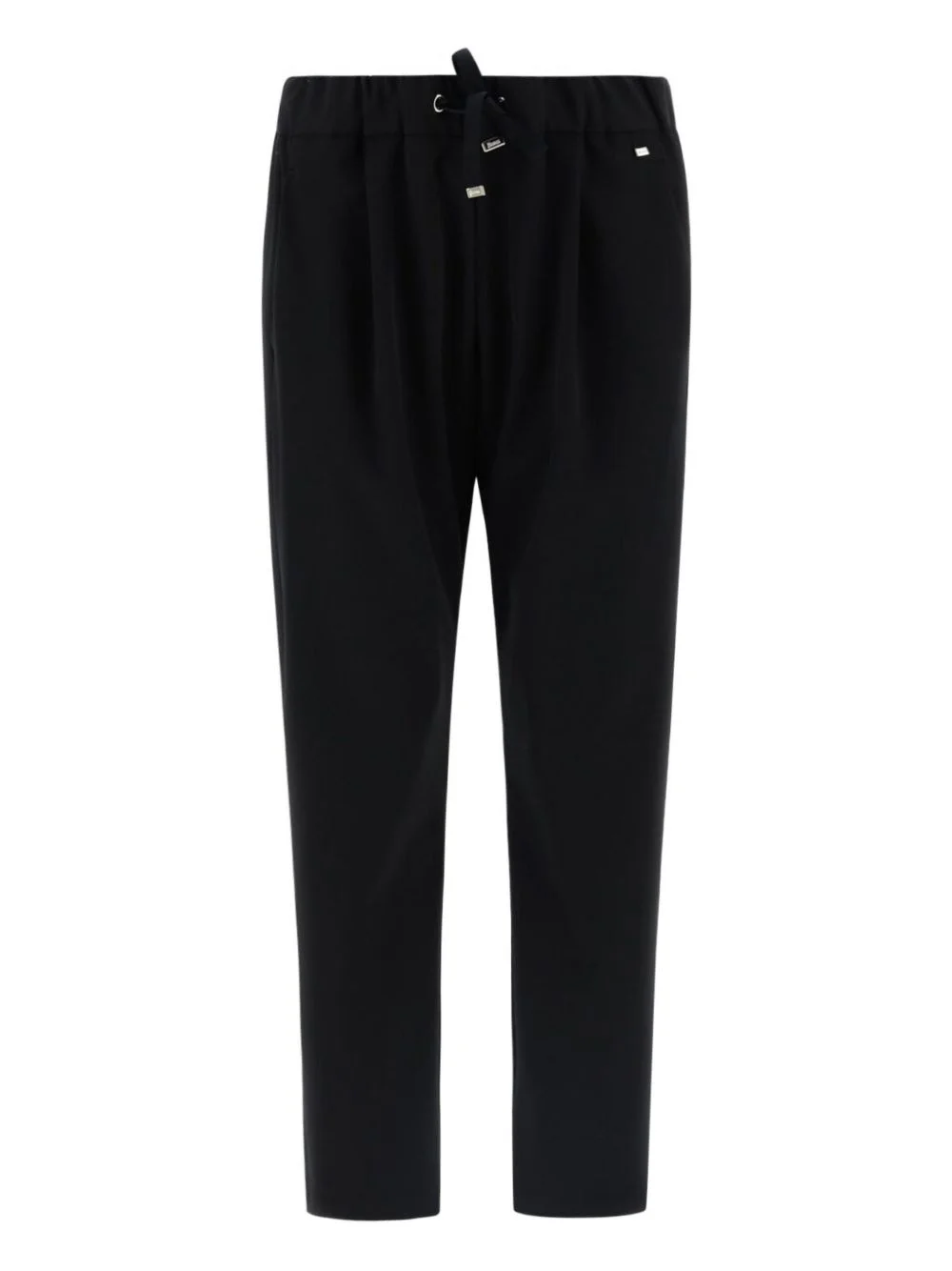 drawstring trousers Highlights - Black - Drawstring fastening - Elasticated waistband - Metal detail - Pleated front - Cropped leg Made in Italy Composition Polyester 89%, Elastane 11% Washing instructions Read Manufacturer Guidelines