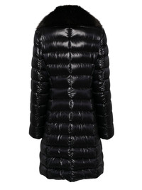 Elisa coat Highlights - Black - Down-feather filling - Padded design - Faux-fur collar - Front zip fastening - Long sleeves - Straight hem Made in Italy Composition Filling: Goose Down 90%, Goose Feather 10% Inner: Acrylic 94%, Polyester 6% Lining: Nylon 100% Outer: Polyamide 100%