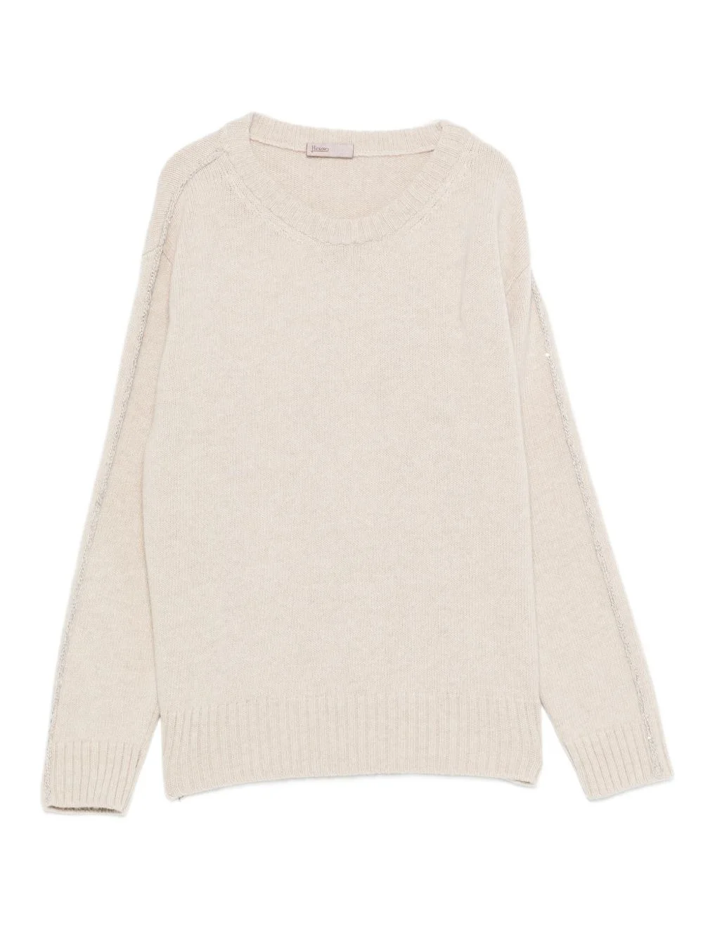 embellished crew-neck sweater Highlights - Beige - Crew neck - Long sleeves - Ribbed cuffs - Embellished shoulder seams - Wool Made in Italy Composition Wool 100% SIZE & FIT Model measurements Height 5 ft 9 in(1.75 m) Bust/Chest 34.64 in(88 cm) Hips 36.61 in(93 cm) Waist 26.37 in(67 cm) Washing instructions Hand Wash