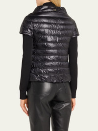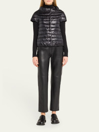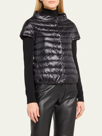 Herno "Emilia" ultralightweight nylon cape Waterresistant Cowl neckline Short sleeves Welt pockets Relaxed fit Hem falls to the hip Concealed snapfront Nylon/polyamide Lining: Nylon Fill: Down/feather Hand wash Made in Romania