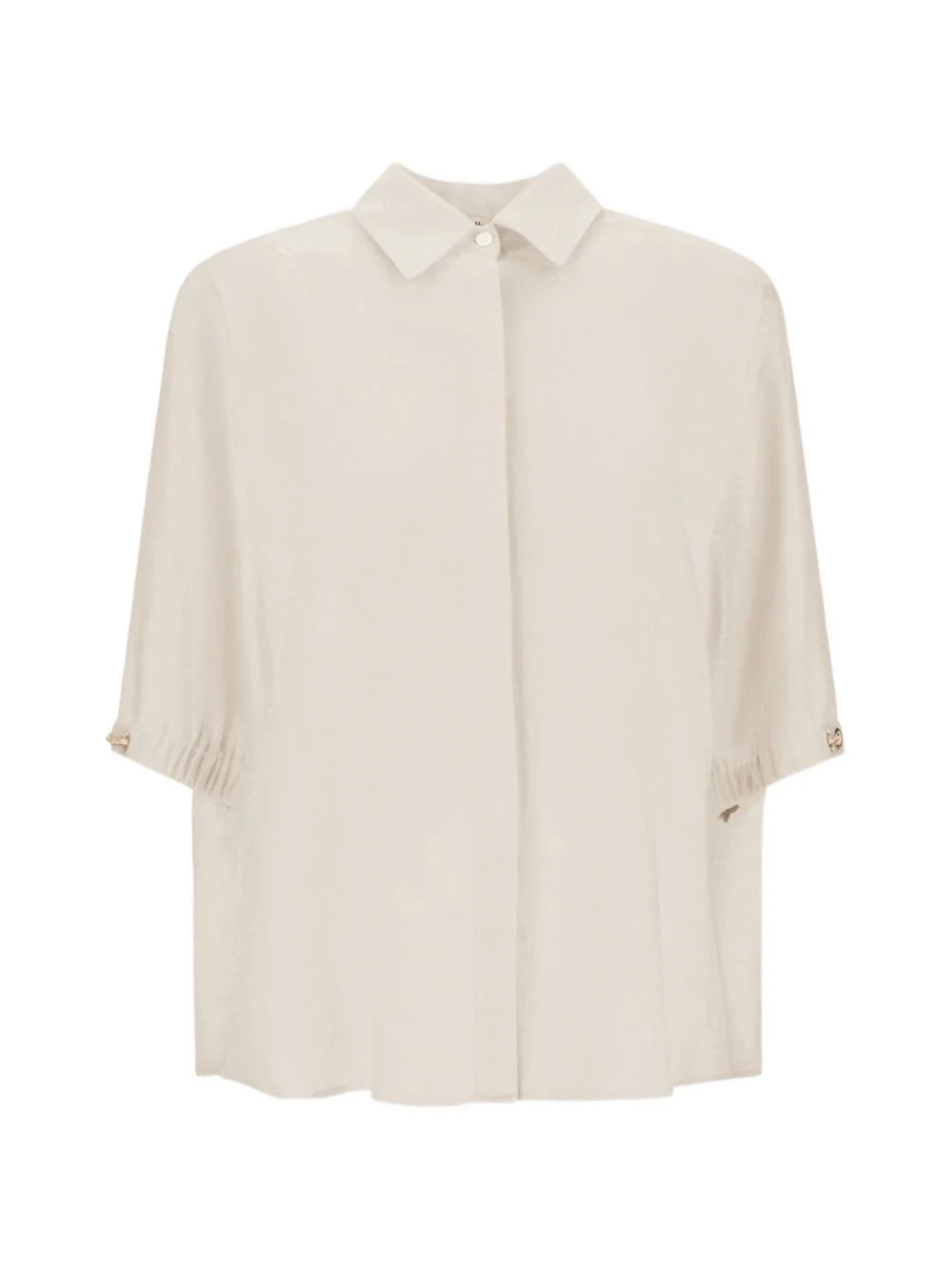 eyelet-detail shirt Highlights - Light beige - Eyelet detail - Front button fastening - Classic collar - Short sleeves Made in Italy Composition Body: Viscose 70%, Linen/Flax 30% Washing instructions Read Manufacturer Guidelines