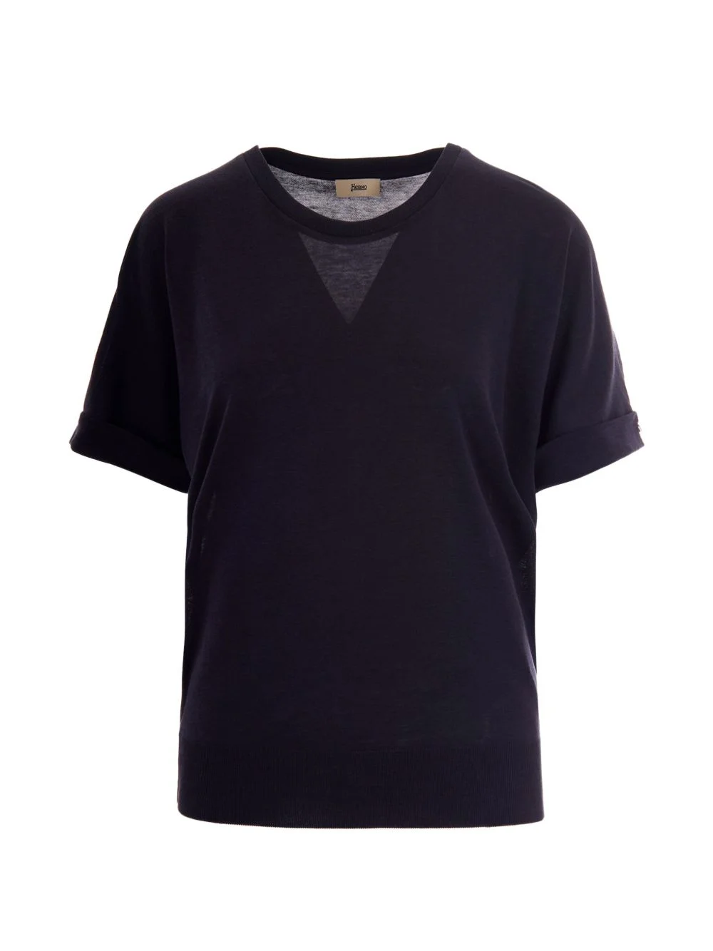 fine-knit T-shirt Highlights - Navy blue - Crew neck - Short sleeves Imported Composition Body: Lyocell 67%, Cotton 33% Cotton 55%, Polyester 45%