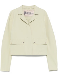 First-Act jacket Highlights - Light green - Concealed front press-stud fastening - Two front flap pockets - Camp collar - Long sleeves Imported Composition Outer: Polyamide 75%, Elastane 25% Lining: Polyamide 75%, Elastane 25% SIZE & FIT Model measurements Height 5 ft 10 in(1.78 m) Bust/Chest 32.67 in(83 cm) Hips 35.43 in(90 cm) Waist 23.22 in(59 cm) FittingInformation Designed for a relaxed fit, this piece allows for comfort and movement when worn Cropped in length Made from a midweight stretch fabric, this piece offers elasticity and flexibility when worn Washing instructions Hand Wash