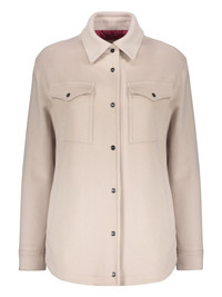 flap-pocket shirt jacket Highlights - Beige - Button fastening - Flap pockets - Long sleeves - Polo collar Made in Italy Composition Recycled Acetate 43%, Virgin Wool 33%, Polyester 24% Washing instructions Read Manufacturer Guidelines