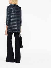 funnel neck padded jacket Founded in 1948, Herno offers a wide range of versatile, easy to wear reversible coats for city wear or weekend getaways. This blue feather down and cotton blend funnel neck padded jacket from Herno features a press stud fastening, cropped sleeves, horizontal panels, an a-line shape, a curved hemline and a long length. Made in Italy Composition Lining: Feather Down 100%, Polyamide 100% Outer: Polyamide 100%, Cotton 60%, Acetate 40% SIZE & FIT Model measurements Height 5 ft 10 in(1.79 m) Bust/Chest 31.49 in(80 cm) Hips 35.03 in(89 cm) Waist 23.62 in(60 cm) Measurement SLEEVE LENGTH 27.55 in(70 cm) Shoulder Width 20.07 in(51 cm) LENGTH 29.13 in(74 cm) WAIST 38.18 in(97 cm) BUST 37.4 in(95 cm) FittingInformation This piece fits true to size. We recommend you get your regular size Cut for a loose fit Made with a lightweight non-stretch fabric Washing instructions Hand Wash