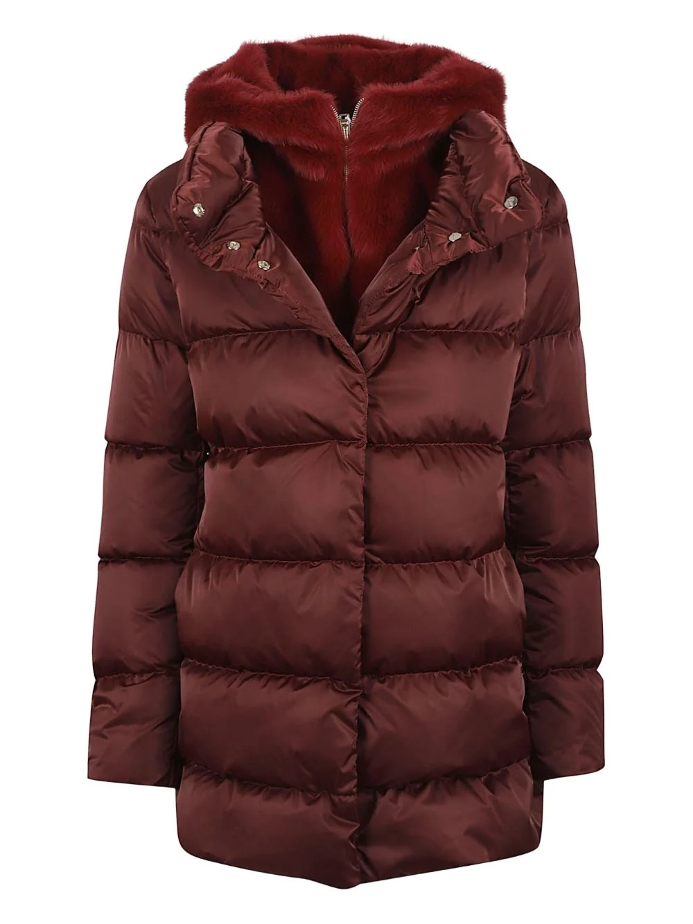 fur hooded jacket Highlights - Burgundy - Fur trim - Hooded - Button fastening - Zip fastening - Quilted Imported Composition Polyester 100% Washing instructions Read Manufacturer Guidelines