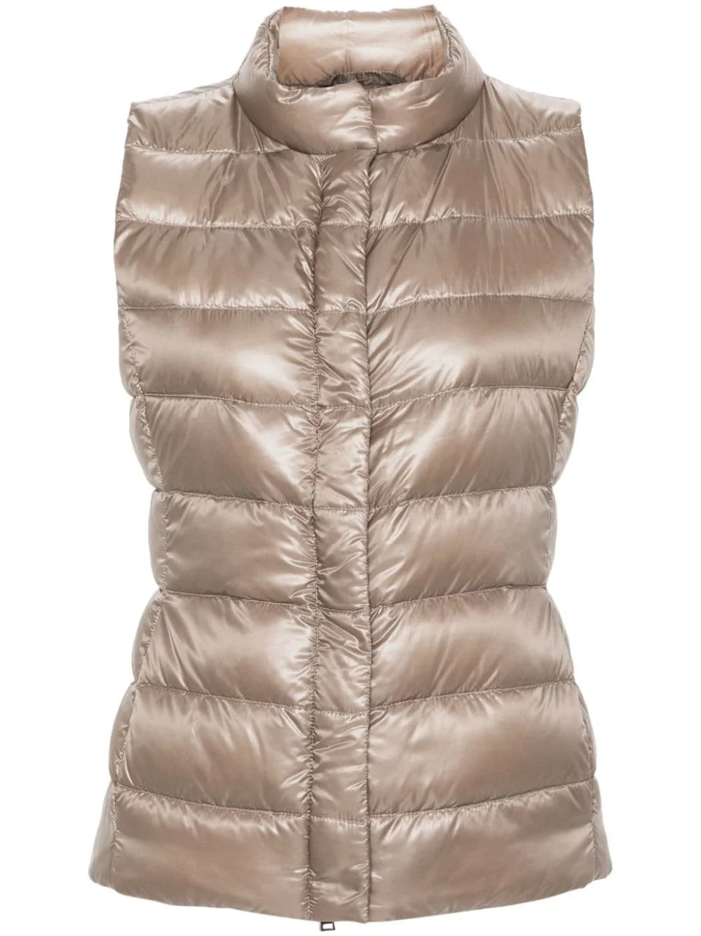 Giulia gilet Highlights - Medium brown - Down-feather filling - Padded design - Quilted - Stand-up collar - Sleeveless - Straight hem - Front press-stud and zip fastening Imported Composition Lining: Polyamide 100%, Goose Down 90%, Feather Down 10% Outer: Polyamide 100% SIZE & FIT Model measurements Height 5 ft 9 in(1.75 m) Bust/Chest 32.67 in(83 cm) Hips 36.22 in(92 cm) Waist 24.8 in(63 cm) FittingInformation Designed for a slim fit that sits just away from the body offering a close yet comfortable fit Made from a padded non-stretch fabric, giving it no natural elasticity This piece fits true to size – take your usual size