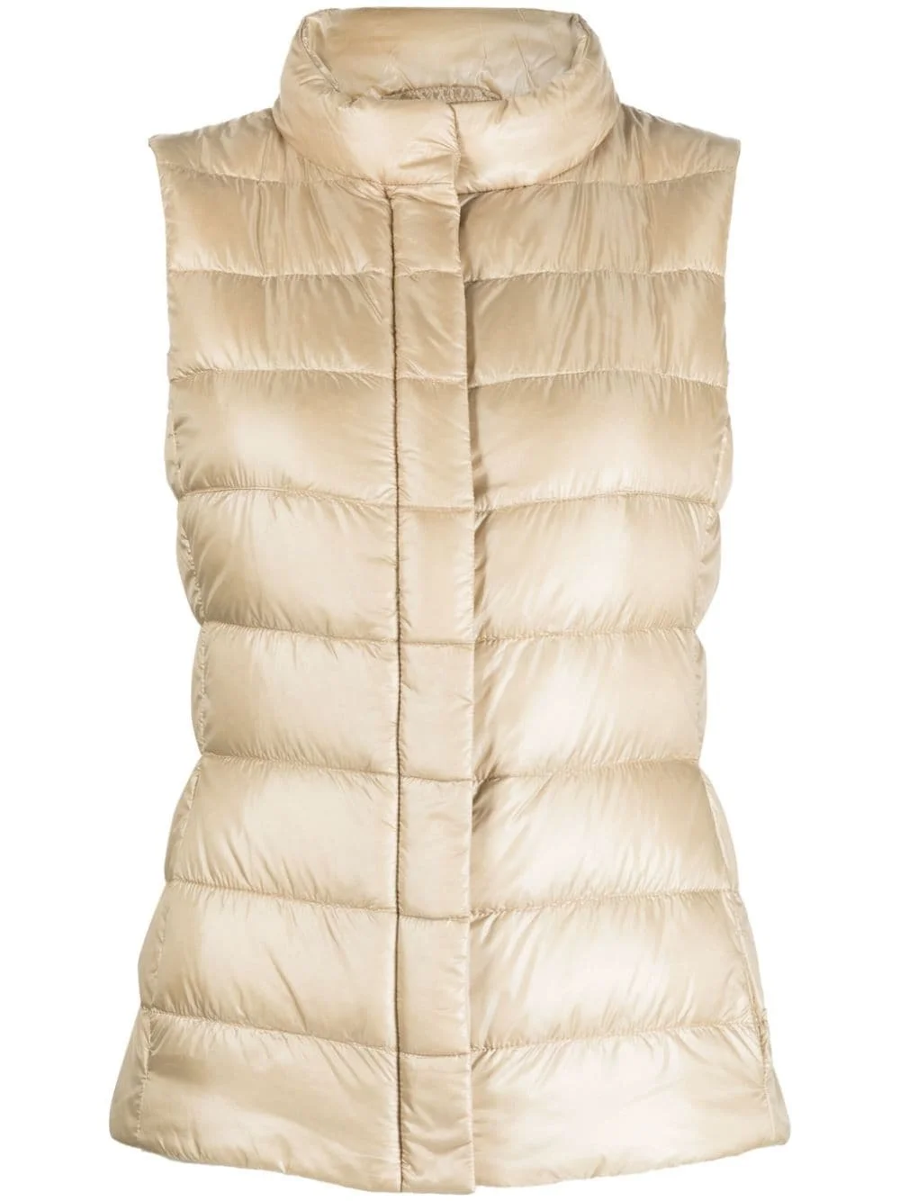 Giulia padded quilted gilet Highlights - Sand beige - Goose down - Quilted - Padded design - Mock neck - Concealed front zip fastening - Sleeveless - Two side welt pockets - Straight hem Imported Composition Filling: Goose Down 90%, Goose Feather 10% Lining: Polyamide 100% Body: Polyamide 100% SIZE & FIT Model measurements Height 5 ft 10 in(1.77 m) Bust/Chest 31.49 in(80 cm) Hips 35.43 in(90 cm) Waist 25.19 in(64 cm) FittingInformation Designed for a slim fit that sits just away from the body offering a close yet comfortable fit Made from a padded non-stretch fabric, giving it no natural elasticity This piece fits true to size – take your usual size
