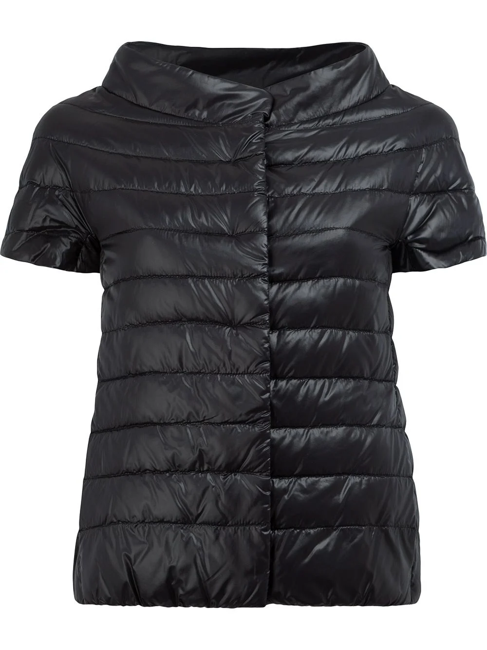 glossy quilted jacket Black cotton blend and feather down glossy quilted jacket from Herno. Imported Composition Lining: Feather Down 100%, Cotton 60%, Acetate 40% Outer: Polyamide 100% Washing instructions Hand Wash