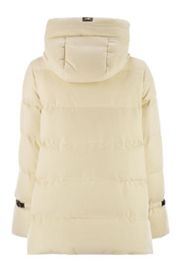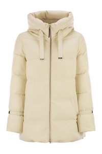 Fine wool jacket crafted with a bi-stretch weave with a textured look that combines performance, comfort and elegance. A snug fabric that adapts to the body's movements, embellished with bright lurex inserts. Cosy and versatile, the model is finished with soft down padding and a grosgrain drawstring hood. - Regular fit - Striped quilting - Down padding - Grosgrain drawstring hood - Side welt pockets - Herno metal logo on the back - Double-slider zip closure DESIGNER ID: PI002104D33467 1100 Gender: Women Material: 92% WOOL, 5% METALLIZED, 3% ELASTANE LINING: 100% POLYAMIDE COATING: POLYURETHANE TRIMMING: 55% COTTON, 45% POLYEWSTER INSERTS: CALF LEATHER PADDING PURE GOOSE DOWN CLASS 1: 90% GOOSE DOWN, 10% GOOSE FEATHER Color: Beige Made in: Italy Product ID: PI002104D33467 1100 *Import tax/duty will be calculated at checkout (If applicable)