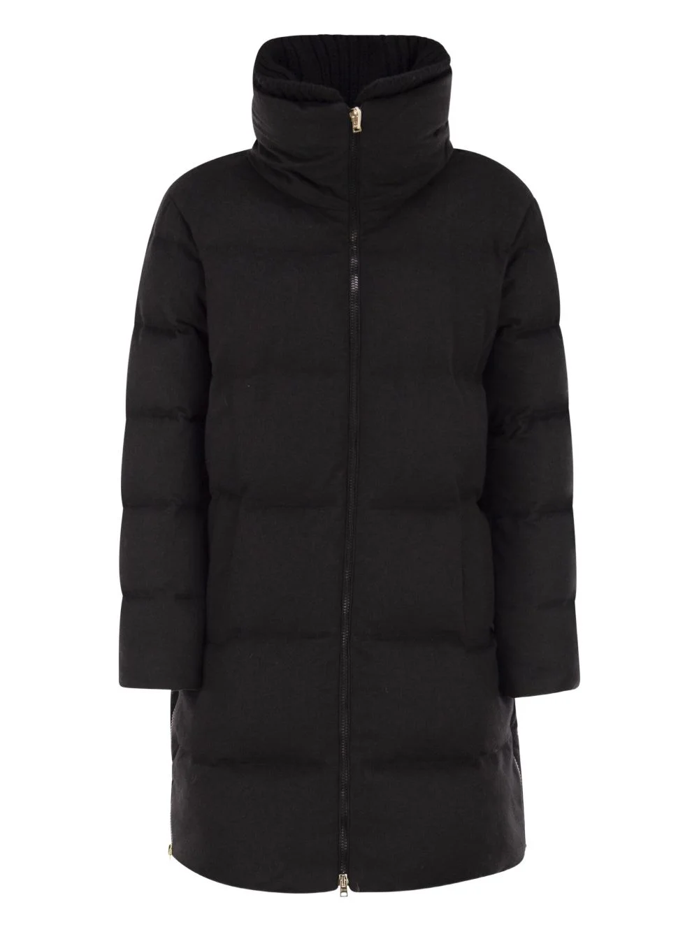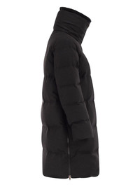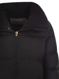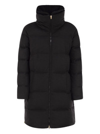 striped-quilted coat Highlights - Black - Striped quilting - High ribbed wool collar - Down padding - Invisible zip-pockets Made in Italy Composition Outer: Silk 51%, Cashmere 49% Lining: Polyamide 100% Washing instructions Read Manufacturer Guidelines