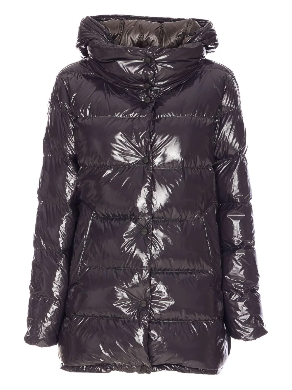 press-stud fastening hooded coat Highlights - Grey - Padded - Snap fastening - Long sleeves - Pockets Imported Composition Outer: Polyamide 100% Lining: Down 80%, Feather 20% Washing instructions Read Manufacturer Guidelines