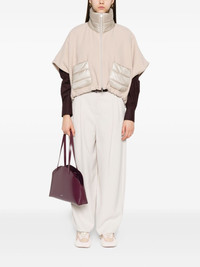 Resort short-sleeve poncho Highlights - Light beige - Short sleeves - Zip fastening - Quilted panels - High neck - Drawstring hem Made in Italy Composition Outer: Polyamide 100%, Wool 90%, Cashmere 10% Lining: Polyester 100% SIZE & FIT Model measurements Height 5 ft 10 in(1.78 m) Bust/Chest 33.85 in(86 cm) Hips 36.61 in(93 cm) Waist 26.77 in(68 cm) Washing instructions Dry Clean Only