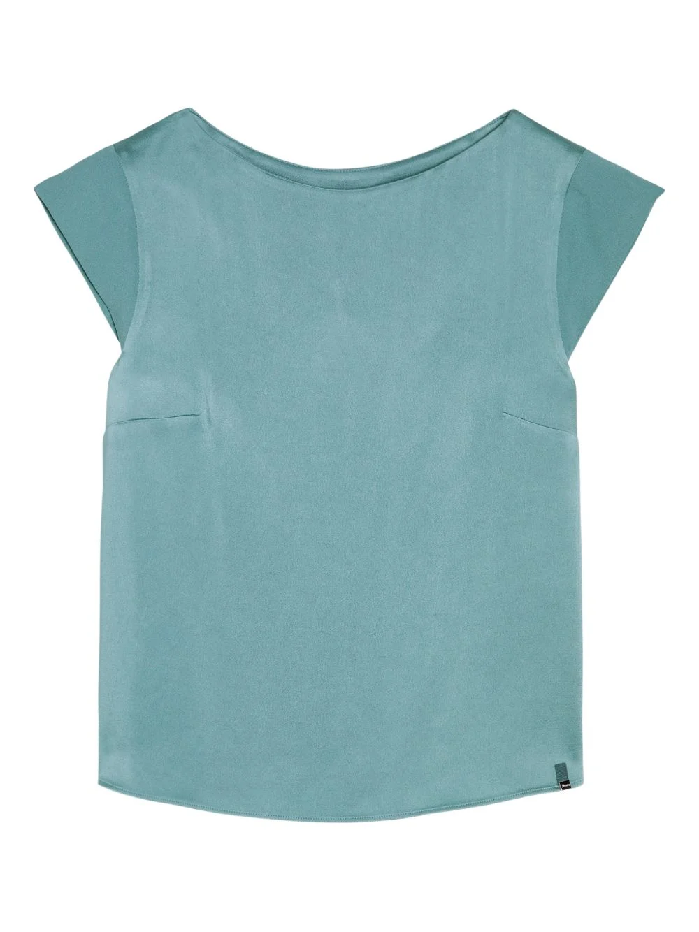 short-sleeve blouse Highlights - Blue - Satin finish - Short sleeve - Boat neck - Straight hem Made in Italy Composition Acetate 72%, Viscose 28% Washing instructions Read Manufacturer Guidelines