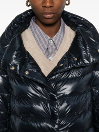 navy blue front press-stud fastening two side slit pockets stand-up collar long sleeves - Color: BLUE - Made in: Romania - Designer Style ID: 12017Z PI0043DIC 9200 Composition and care Outer Composition Cotton: 55.0%, Outer Composition Polyamide: 100.0%, Lining Composition Polyamide: 100.0%, Outer Composition Polyester: 45.0%, Lining Composition Goose Down: 90.0%, Lining Composition Goose Feather: 10.0%