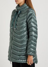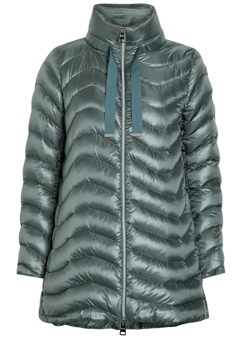 Info & Care Herno glossed shell jacket Quilted, drawstring-fastening high-neck, zip-fastening side slip pockets, designer plaque at back neck, fully lined Two-way zip-fastening through front 100% polyamide; filling: 90% down, 10% feather Dry clean Size & Fit Length shoulder to hem:;29 inches/ 73.5cm Midweight; Regular fit Model is 5'9"/ 175cm and wears a size IT40