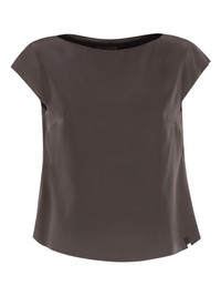 boat-neck blouse Highlights - Dark brown - Boat neckline - Short sleeves - Logo detail Made in Italy Composition Acetate 72%, Cotton 55%, Polyester 45%, Viscose 28% Washing instructions Read Manufacturer Guidelines